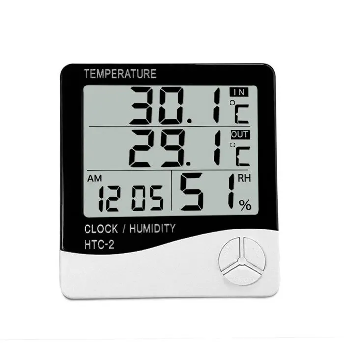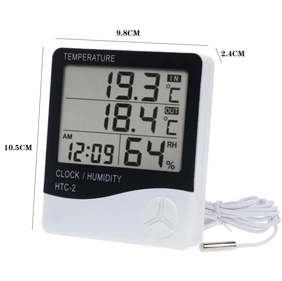 Electronic Digital Temperature Humidity Thermometer, Hygrometer Weather Station Alarm Clock, HTC-2 Room Indoor and Outdoor