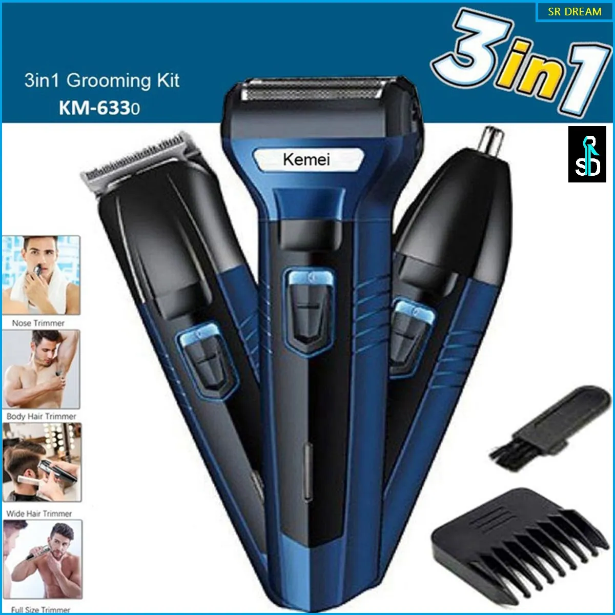 Kemei KM-6330 3 in 1 Professional Hair Trimmer Super Grooming Kit Shaver Clipper Nose Trimmer